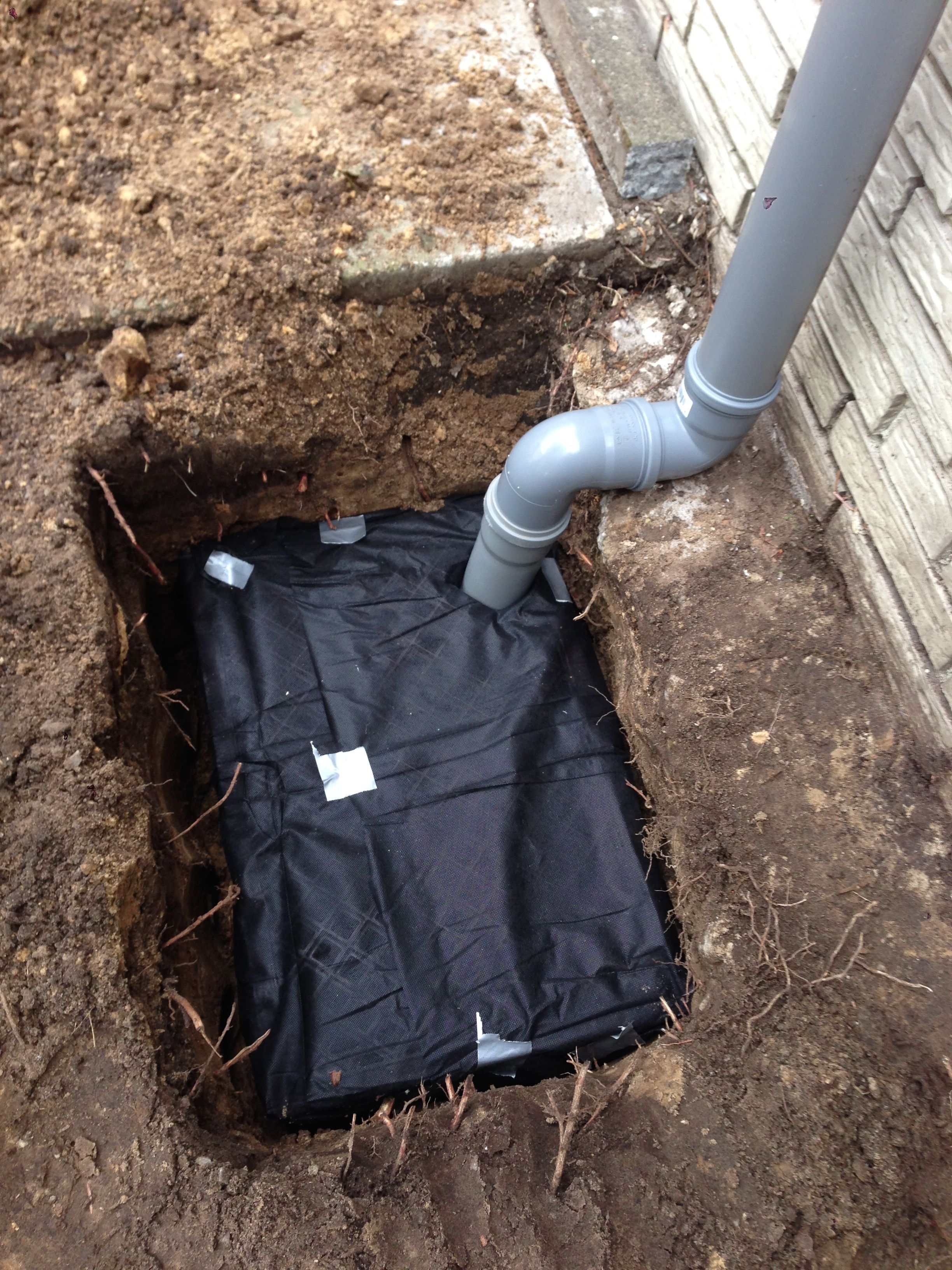 Auf dem linken Bild ist meine selbstgebaute "Entwässerungskiste": zwei aneinander geschraubte Obst-Kisten, mit Unkrautvlies eingepackt und in der Erde vergraben - Fassungsvermögen: ca. 100 Liter. Auf dem rechten Bild ist die Innenansicht der Bar mit der Arbeitsplatte und dem verlegten Fußboden (alles aus OSB-Platten).