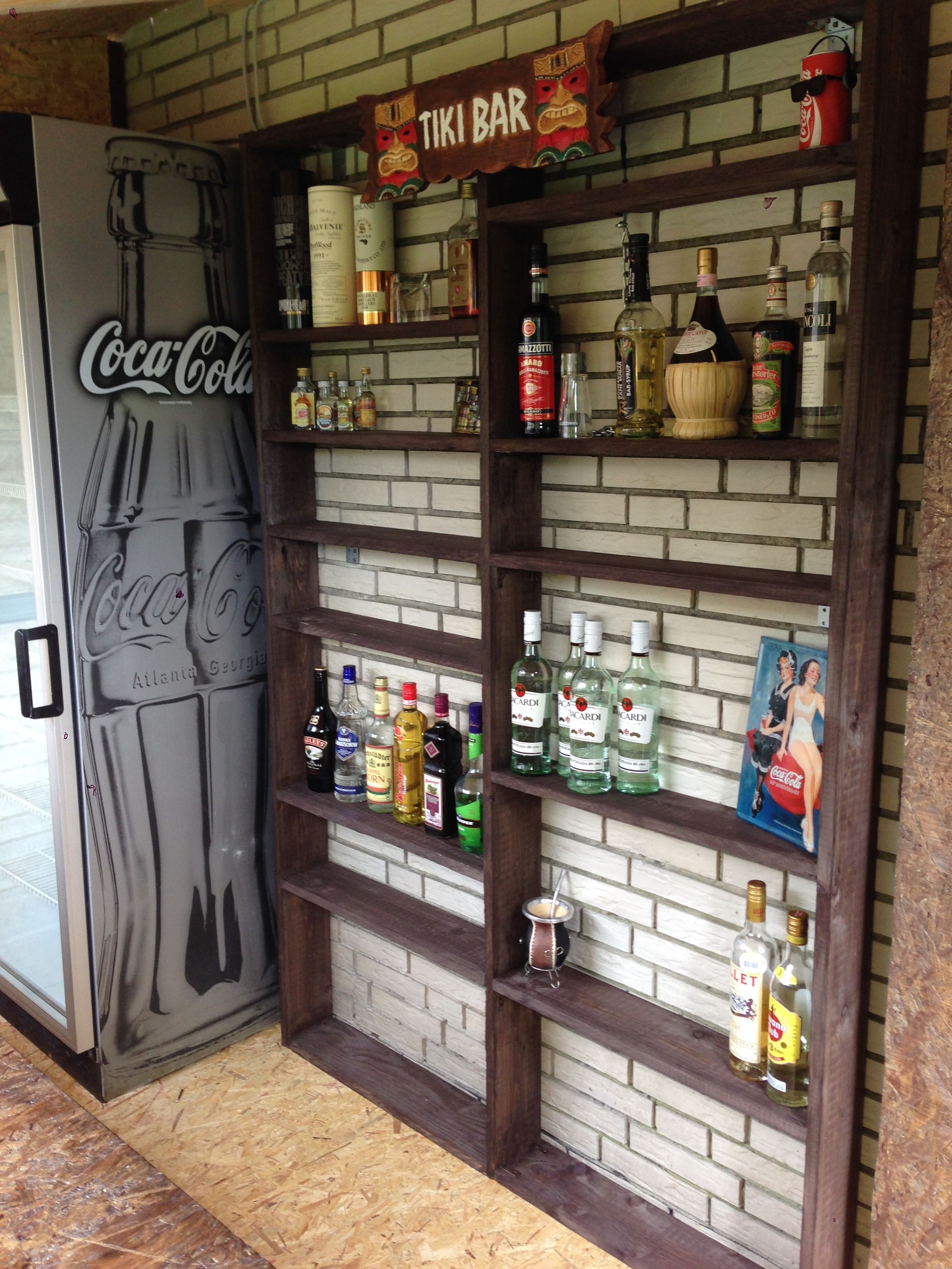 Mein großer Cola-Kühlschrank, ein selbst gebautes Regal und ein wenig Deko dürfen natürlich nicht fehlen: