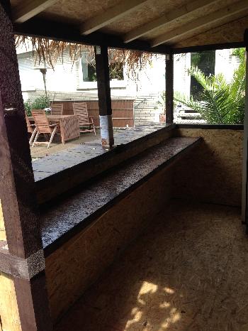 Hier ist die komplette Entstehungsgeschichte unserer Tiki-Bar (Bau im Frühjahr 2014) zu sehen.