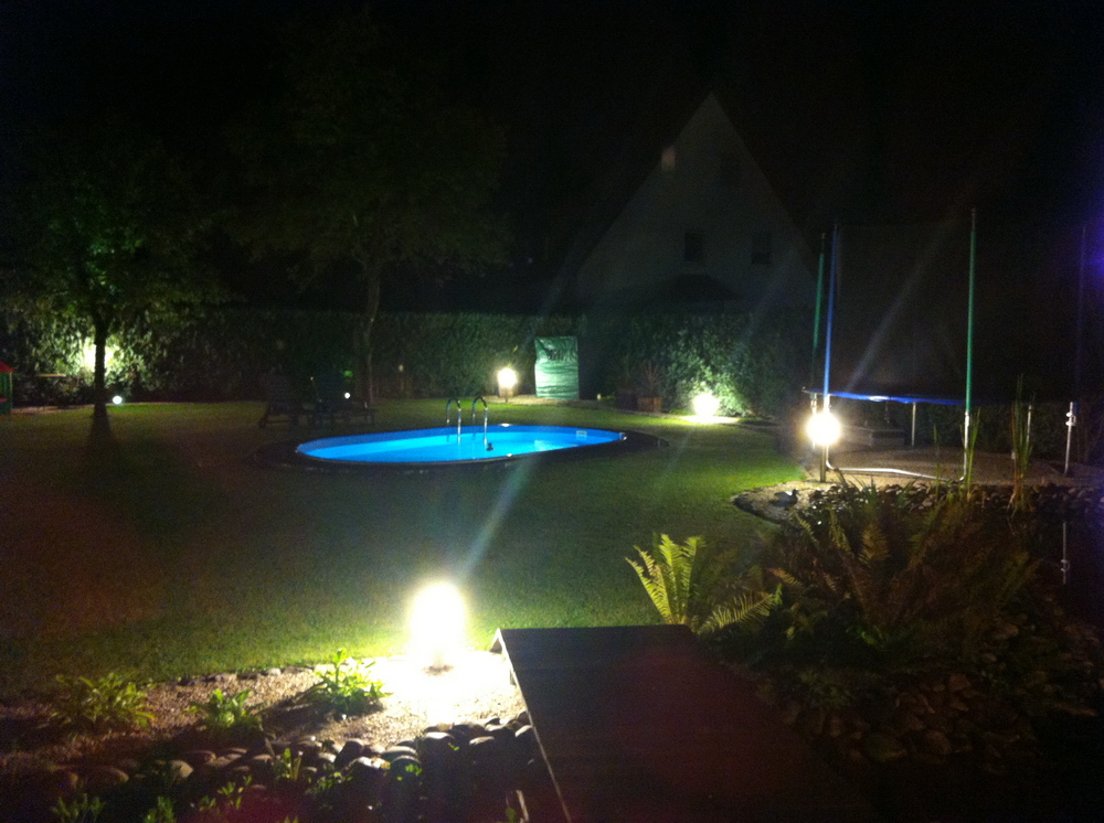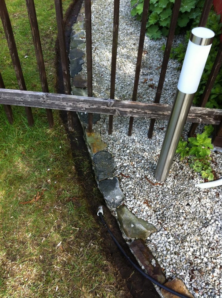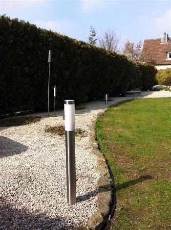 Frühjahr / Sommer 2012: Aufbau von 15 Edelstahl-Lampen (inkl. ca. 150 Meter NYY-Kabel):