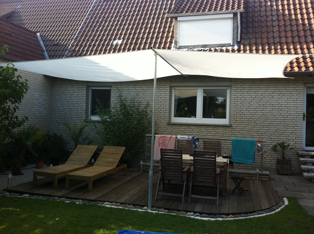 Juni 2012: Montage eines Sonnensegels (6m x 4m) inkl. Gestänge zum Abstützen über unserer Terrasse: