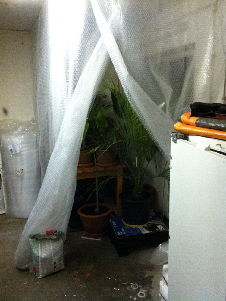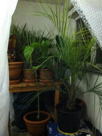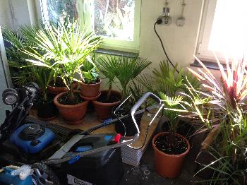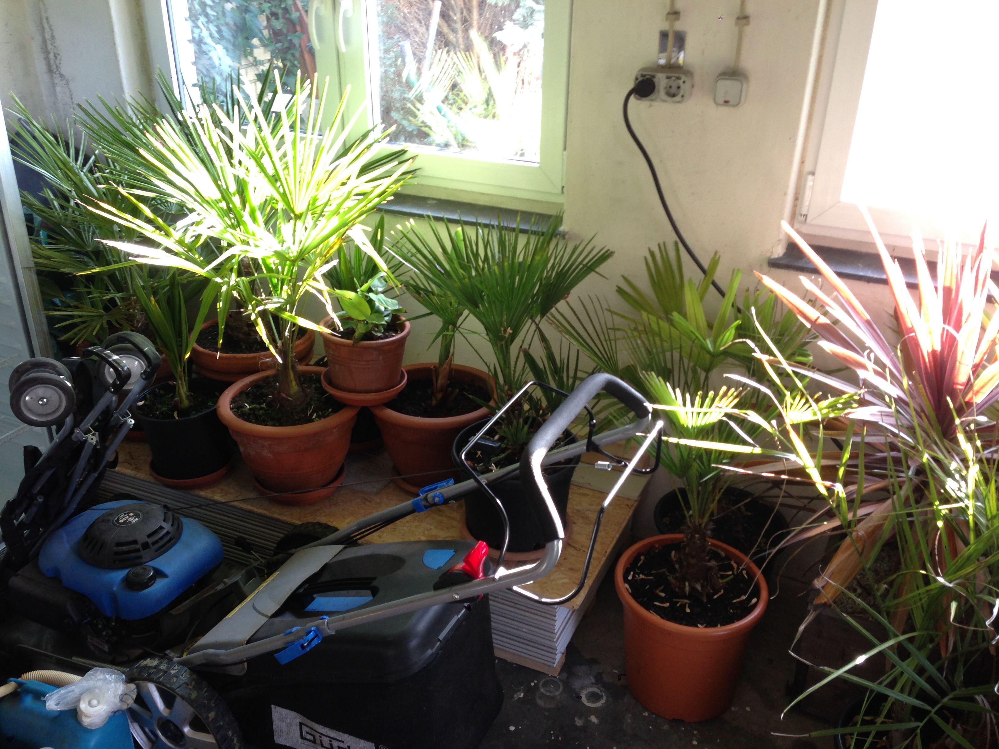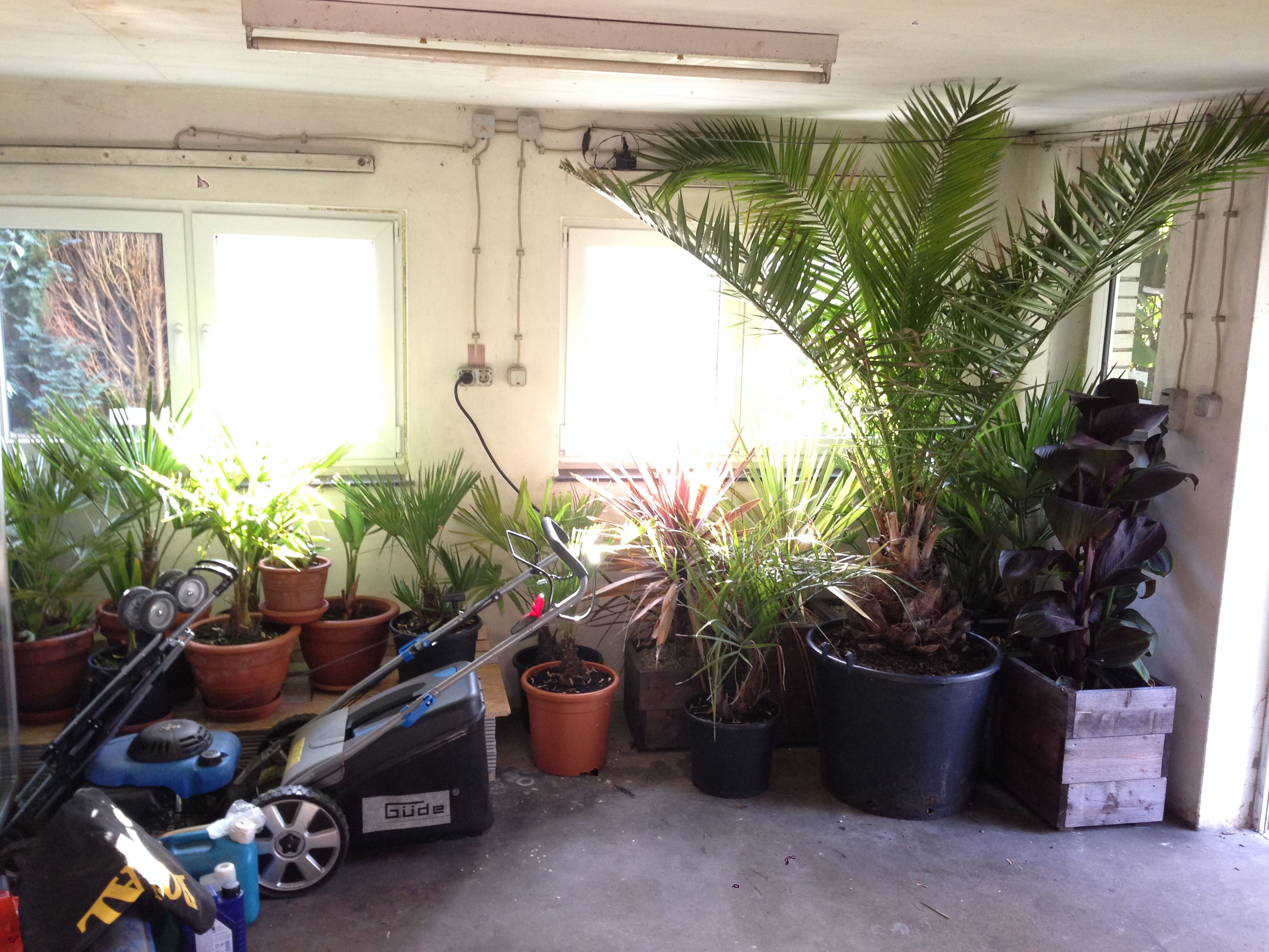 Einige Impressionen der "Winterbehausung" in unserer Garage für die noch nicht ausgepflanzten Palmen und Exoten. Dieser wird über einen Frostwächter auf ca. +5 Grad gehalten: